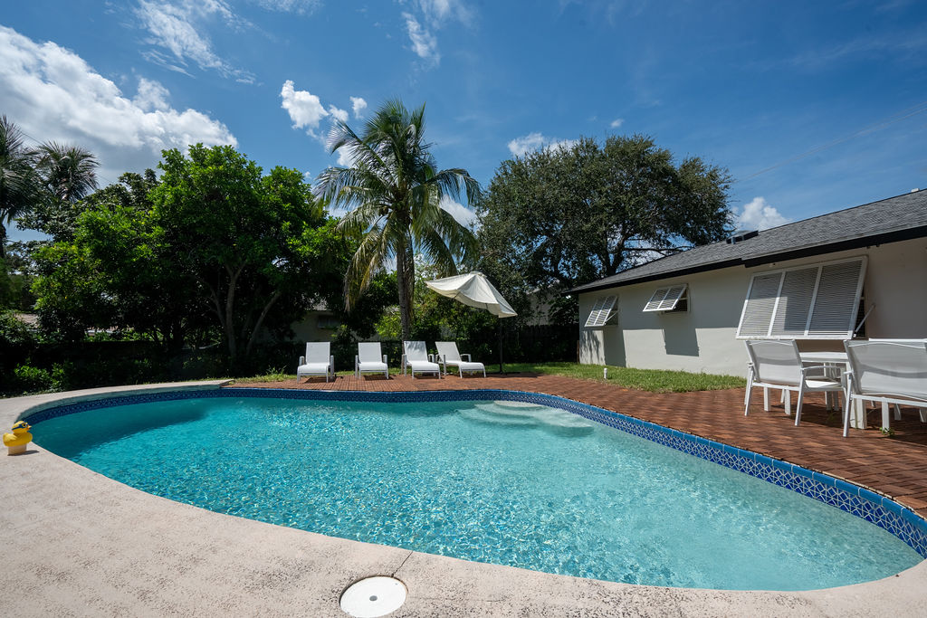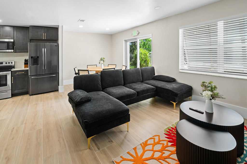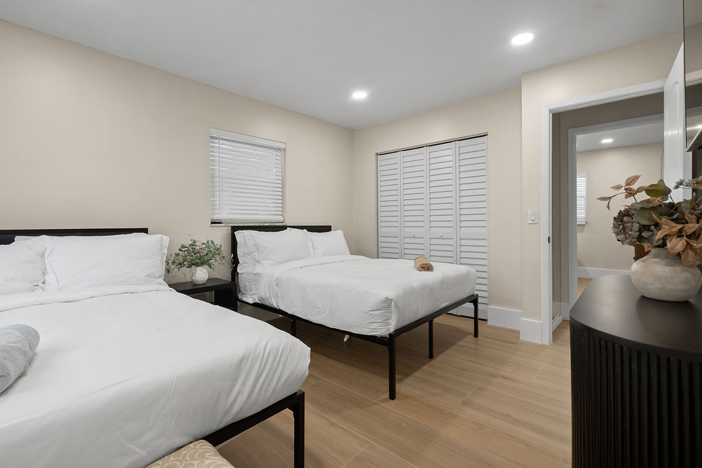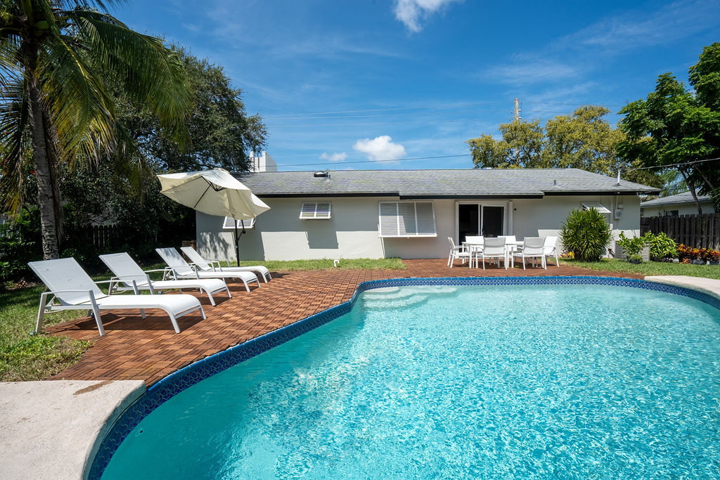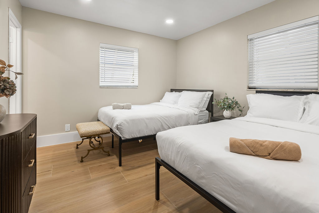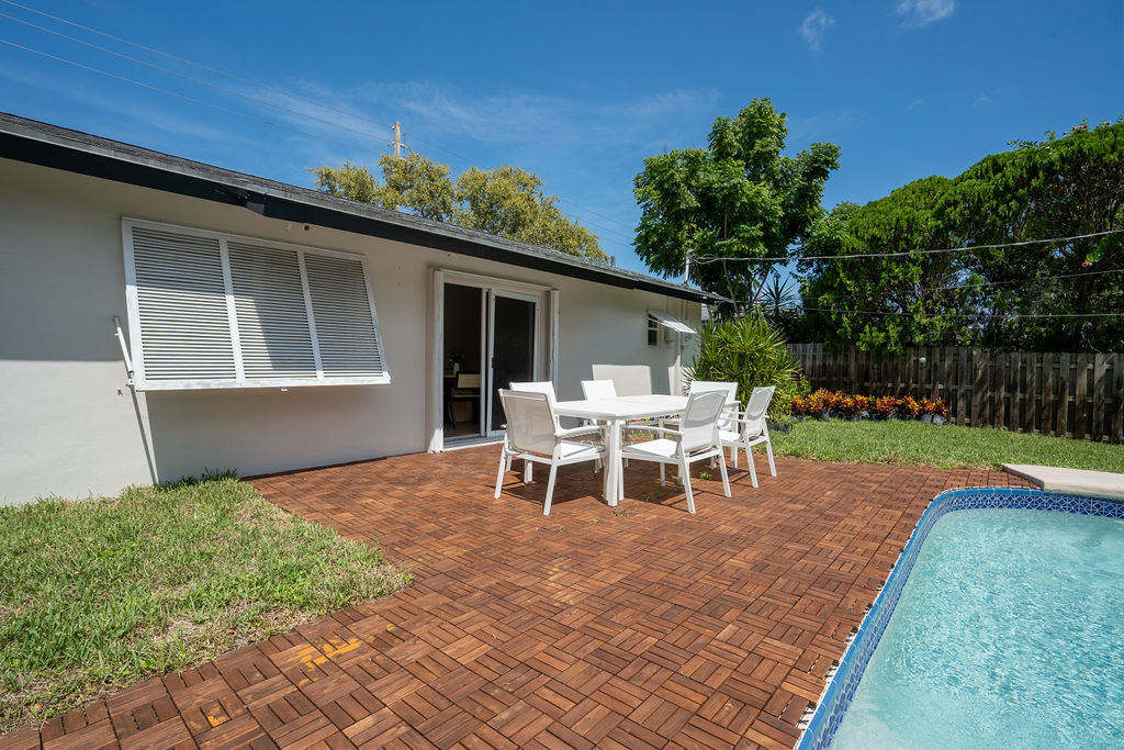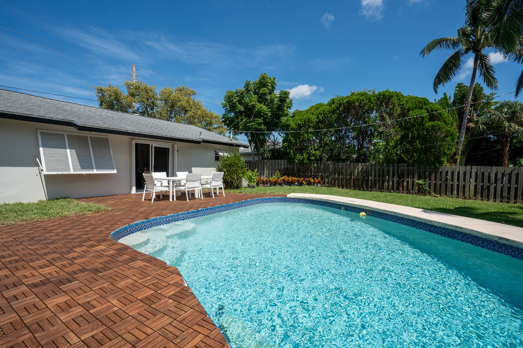 Stay in style at this beautifully decorated home that is in the center of everything. This home has a fully fenced-in Backyard, 8 beds, two bathrooms, 15 minutes from PBI airport, 5 minutes from Trader Joe's, mall, shopping etc and 5 minutes from the beach.
