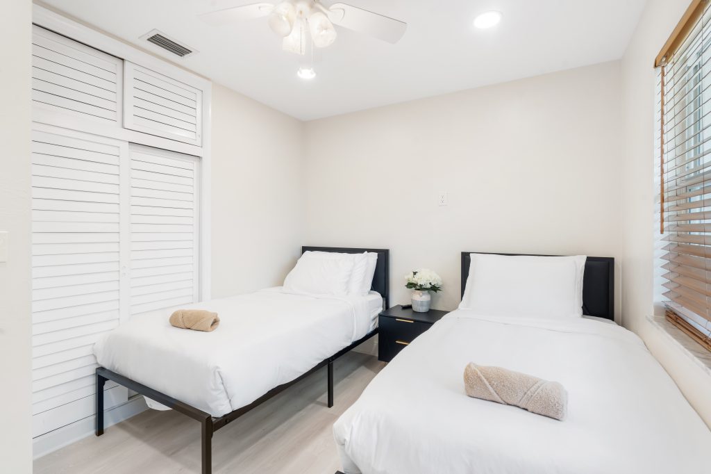 Stay in style at this beautifully decorated home that is in the center of everything. This home has a fully fenced-in Backyard, 8 beds, two bathrooms, 15 minutes from PBI airport, 5 minutes from Trader Joe's, mall, shopping etc and 5 minutes from the beach.