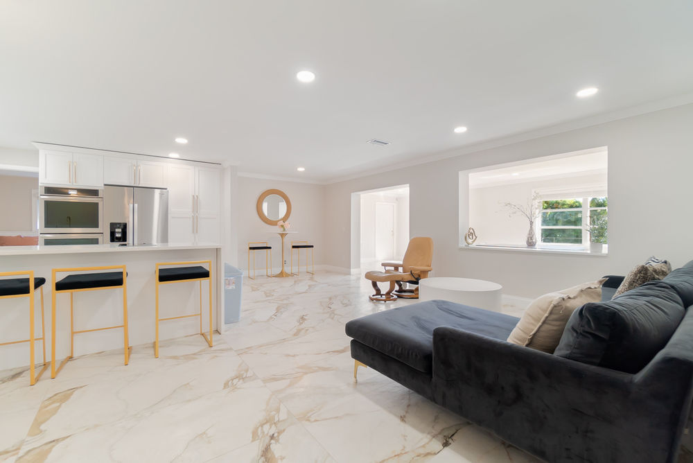 Upon entering, you’ll be greeted by a spacious and light-filled living room, tastefully decorated with modern furnishings and adorned with fine artwork. The open-concept layout seamlessly connects the living area with the dining space and the fully equipped kitchen, creating a welcoming and sociable environment for family and friends.