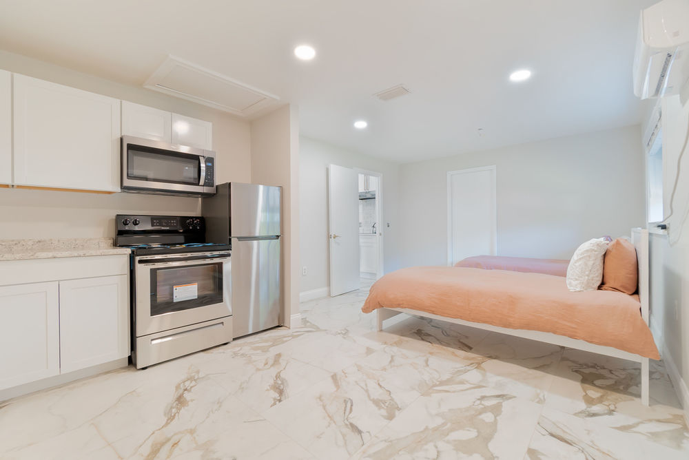 The 4th bedroom is a separate suite that has its own ensuite mini-fridge, cooking area, Bathroom, and a separate washer and dryer